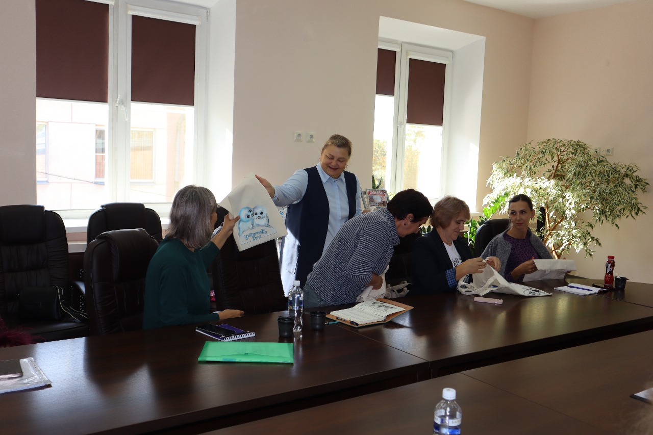 В завершение приветственной речи Татьяна Владимировна вручила гостям символичные подарки — экосумки с изображением байкальских нерп, которые специально для этого события изготовили в декоративно-прикладной мастерской нашего Центра.