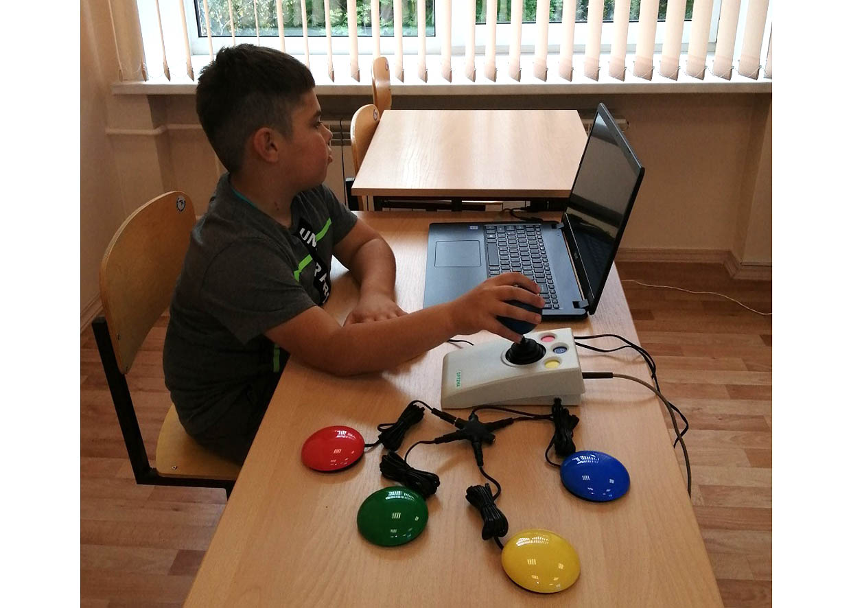 В специальном программно-техническом комплексе для детей с ОВЗ разработчики предусмотрели набор выносных компьютерных малых кнопок разного цвета и большой выносной кнопки, предназначенных для облегчения управления компьютером, а при подключении к джойстику кнопки работают как альтернатива кнопке на компьютерной мыши, эти кнопки при подключении к специализированной клавиатуре используются для выполнения наиболее часто вызываемых команд. Усилие, требуемое для нажатия, регулируется поворотом кнопки. большая выносная кнопка имеет возможность крепления на регулируемом кронштейне или на руке, или на поясе при помощи специальной липучки.